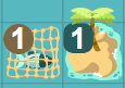 Die Zahl an der Insel zeigt jeweils an, wie viele Fische bestellt wurden und abgeliefert werden
